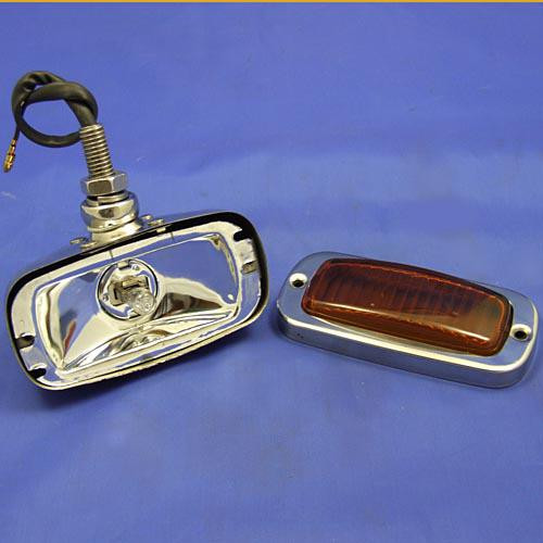 Polished stainless steel body (110mm x 55mm x 80mm deep) with polycarbonate lens. Single bolt fixing allows choice of mounting. Ball joint mounting with spring washer and fixing nut. H3 halogen bulb 12v x 20 watt - part number B446 (H3-20-12V). Upgrade with LED lamp H3LED-P65 if required. Choice of - clear lens for a reversing lamp, red lens for an auxillary rear warning lamp and amber lens for indicator.